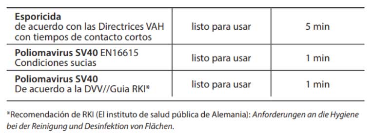 - Acción esporicida en 5 minutos.